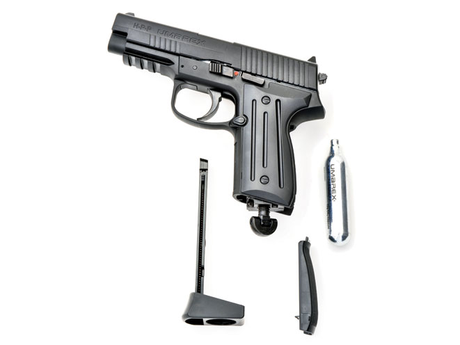 The Umarex High Power Pistol (HPP) is the company’s own design and features a large, rugged, all-metal slide and frame, double-action (DA) hammer-fired design along with a removable 15-shot BB magazine and CO2 capsule in the grip. Weighing in at 30 ounces, the HPP is reminiscent of numerous modern semi-autos with an overall length of 7 inches, a 3.8-inch barrel, height of 5.5 inches, and the balance and feel of a real 9mm. (umarexusa.com; 479-646-4210)
