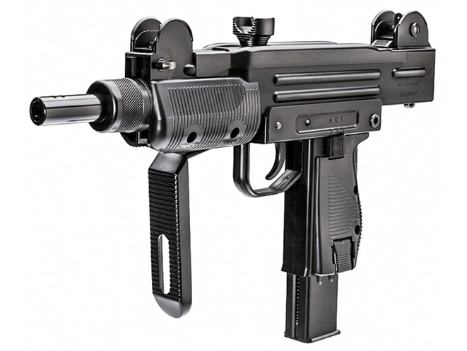 This is one you have to see to believe that it is an air pistol. The Umarex Uzi is a well-built, all-metal BB pistol with a blowback action. It features a 28-round magazine. This remarkable Uzi BB gun, licensed by Israeli Weapon Industries, even has a folding shoulder stock, a functional grip safety, a Picatinny rail under the forearm cover and an adjustable rear sight. The semi-auto air pistol weighs an appropriate 2.45 pounds with a 5-inch barrel and an OAL (stock extended) of 24 inches.(umarexusa.com; 479-646-4210)