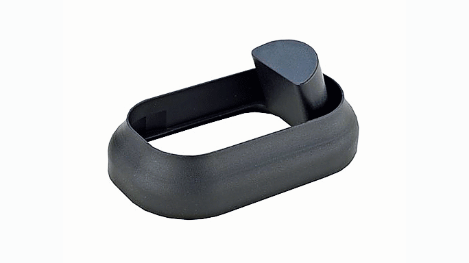 This add-on nearly doubles the size of the mag well opening while still matching the contour of the grip. It makes it easier to slamming a fresh magazine into the mag well. Constructed of aluminum with a black anodized finish, the JP Enterprise mag well adds only 1.1 ounces to your pistol and is 1.375 inches wide and 2.625 inches long. Installation is simple: Insert the retention plug in the cavity at the rear of pistol frame so the threaded hole is on the bottom, hook the mag well over the front of the magazine opening in the frame, then rotate it so it is fully on the frame. Tighten it using a hex wrench. It does not work with the factory backstraps. The mag well is not permanent and does not mar the frame.
