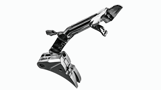 Lone Wolf Distributors offers a drop-in Glock trigger called the Ultimate Adjustable Trigger. Constructed of aluminum, the Lone Wolf trigger is smooth and symmetrical with a flush safety lever for more comfortable shooting. The safety lever spring is oversized, which also aids in shooting comfort. Also, thanks to a hex screw, the Lone Wolf trigger is adjustable for take-up and travel without having to be removed from the frame. This trigger has less wobble between the shoe and trigger bar. The shoe is made from 6061 billet aluminum. Follow the instructions and the installation is super simple.