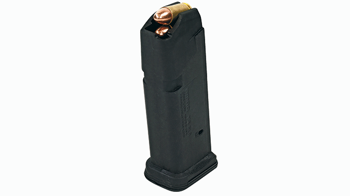 Feeding your Glocks with standard mags is fine, but if you’re ready to turn things up a notch, Magpul is now offering Glock gear. Magpul’s PMAG 15 GL9 mags are made for compact and subcompact 9mm Glock handguns. The PMAG 15 GL9 is a 15-round Glock 9mm handgun magazine featuring all-polymer construction for flawless reliability and durability over thousands of rounds. Here’s what each $16 magazine features: a high-visibility, controlled-tilt follower; a stainless steel spring; an easily removable floorplate for cleaning; a paint pen dot matrix to identify the magazine; ridged floorplate edges for a better grip; and indicator windows.