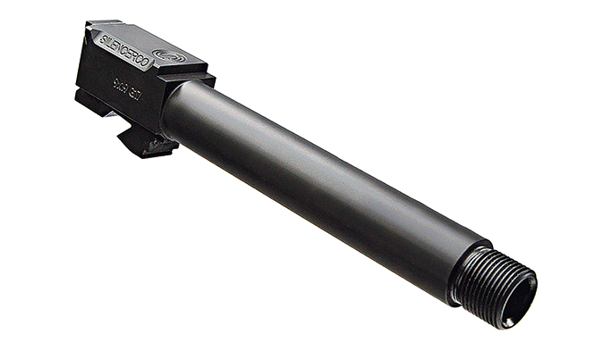 Glocks lend themselves to easy, no-gunsmithing-required barrel swaps. There are a variety of reasons to change barrels, and the biggest might be to add a sound suppressor. SilencerCo makes a suppressor-ready, drop-in barrel for Glock pistols. The barrel for a Gen3 or Gen4 G17 is 5 inches long with 1/2×28 threading. It is made of 416R stainless steel with a matte black finish. SilencerCo also offers threaded barrels for the G17L, G19, G21 and G34.