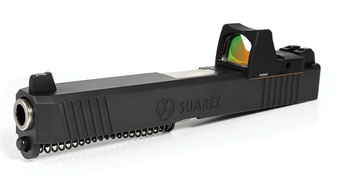 Suarez International has been mounting reflex sights on Glocks since 2011. The V3.0 slide is constructed of 17-4 aerospace-grade steel and comes with a variety of options like slide internals, iron sights, a Trijicon RMR sight and an OEM recoil unit. Just add a barrel. The Trijicon sight is placed between the ejection port and rear sight. From the ergonomically located forward and rear serrations to the reflex sight, the V3.0 brings your Glock pistol squarely into the 21st century.