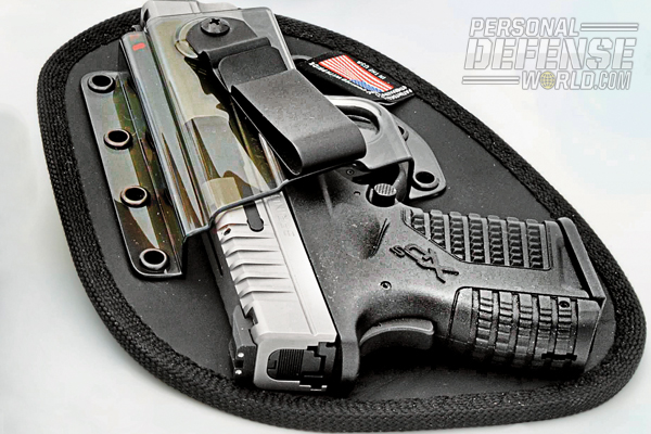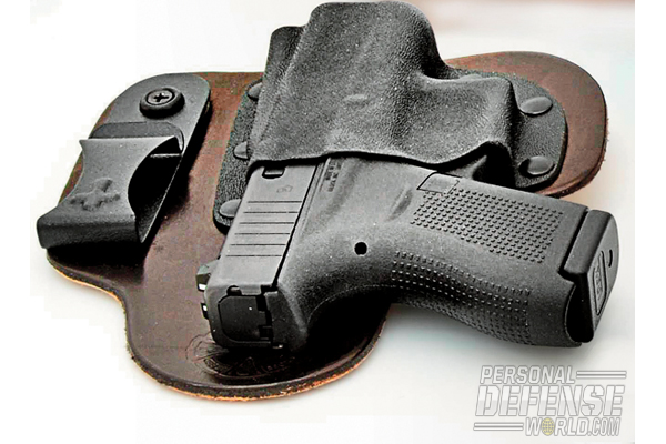 If you are not going with an IWB, a paddle holster is another excellent alternative. They are easier to mount than a belt holster, and a paddle rig can also be quickly positioned anywhere around your waist as situations dictate, from a strong-side 2 o’clock (appendix) or 3 o’clock (hip) position to a more covert 4 o’clock or back of the hip location. Those that are cant adjustable (most are these days) can also be adjusted to work for crossdraw wear. A variety of manufacturers, including Blade-Tech, offer interchangeable back plates so a holster can be switched from belt wear to paddle mount in a matter of minutes, offering excellent versatility with one holster.