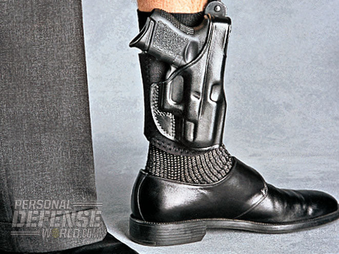Ankle holsters range from super comfortable to excruciatingly painful depending on the amount of padding, whether the gun rests on your ankle bone and how tightly it is strapped. They can become exposed when seated as pant legs ride up, but they make most smaller-framed weapons almost disappear. However, they are very slow to draw from, require practice hiking the pant leg before drawing and are generally impossible to get to while physically fighting with someone. That said, they remain my favorite type of holster if I cannot wear one on my waist.