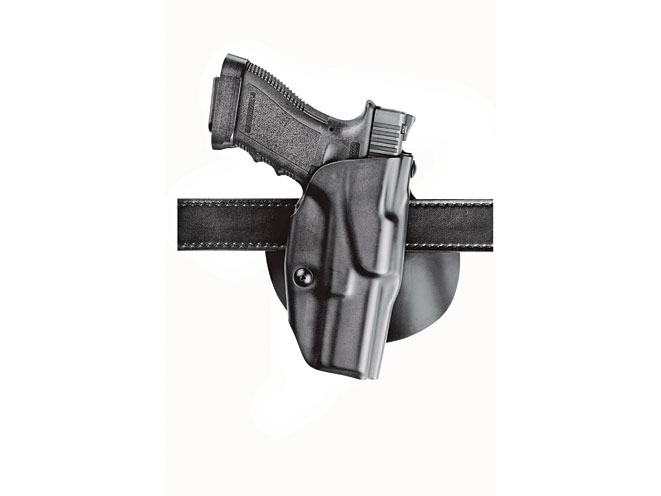 Keeping the gun in the holster is important. We have all heard stories of someone accidentally dropping a gun in a public place. Cops worry about someone grabbing their gun out of their holster. If you carry concealed, you don’t need to worry about this nearly as much as a cop, because no one should know you have it unless you draw down on them. An open-top holster is fine for most people. If you are athletic and like to do handstands in the park with your kids, I recommend some type of retention device like a thumb-break snap. Just make sure you can disengage any retention device during your natural drawing motion. (Pictured: Safariland 6378 ALS with Paddle)