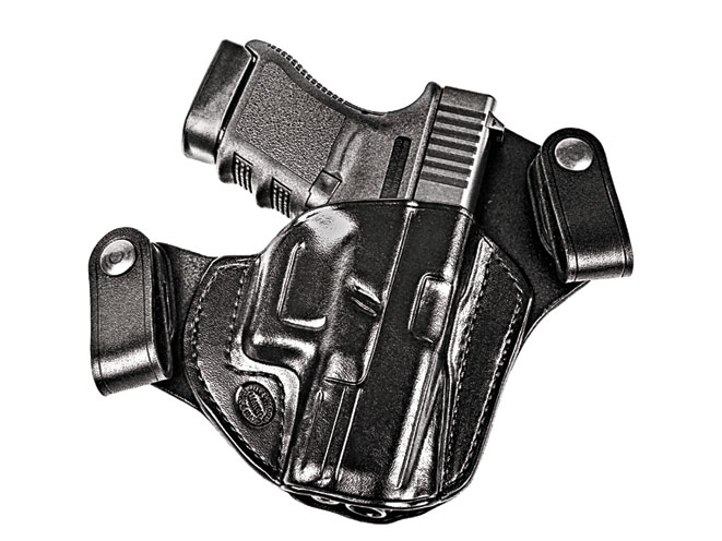 IWB holsters are typically worn at the 1 o’clock position, and anywhere from the 3 o’clock to the 6 o’ clock. They offer the maximum in concealability, but many people find them uncomfortable. As a general rule, you will need to buy pants 2 inches bigger in the waist to wear an IWB. There are a lot of great companies making IWB holsters in both leather and Kydex. Some IWBs can also be worn outside the pants but inside the belt. Some even allow a shirt to be tucked into the pants, over the holster. Gun grips tend to be lot tougher than skin so wearing an undershirt is a must, unless you buy a holster that has some type of backing that prevents the gun from rubbing against you.