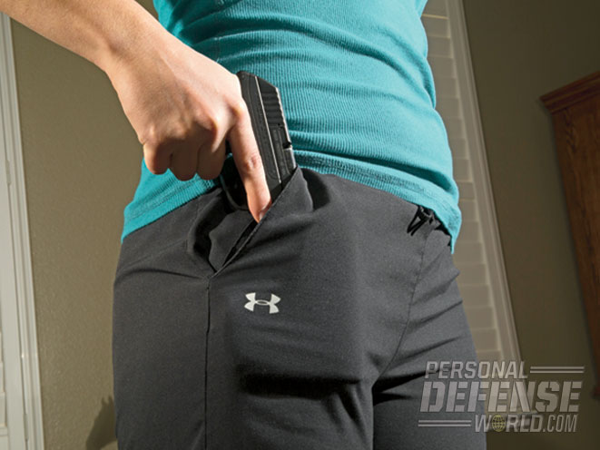 The worst thing about a pocket holster is that you lose the use of that pocket for a wallet, keys or incidentals. However, on a hot day, when you are wearing shorts or can’t wear a belt, pocket holsters are excellent for concealment. With a little practice, they are easy to draw from. Most have a little tab at the bottom on the front or the back. That tab is supposed to hook onto the pocket as the pistol is drawn to keep it from coming out with the pistol.