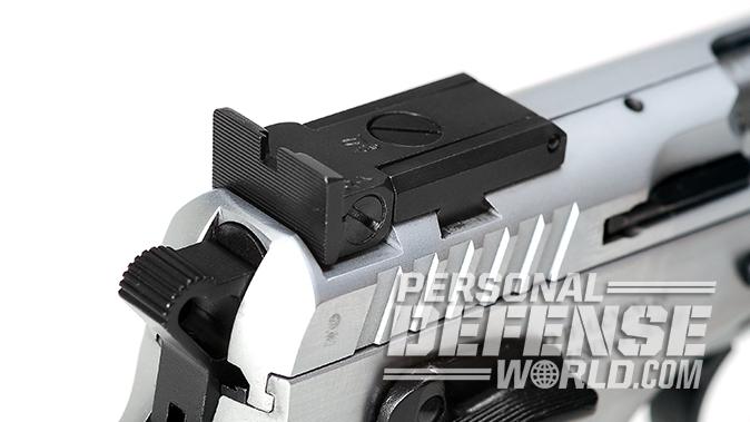 Like the EAA pistol, Sig Sauer’s P220 Legion uses a DA/SA trigger and has a stainless steel frame and slide. But like the Ruger, it has an eight-round, single- stack magazine. It is hammer-fired with a decocking lever located in front of the left grip panel, and it is the only one of the quartet that comes standard with night sights. It’s also the heaviest of the four test guns.
