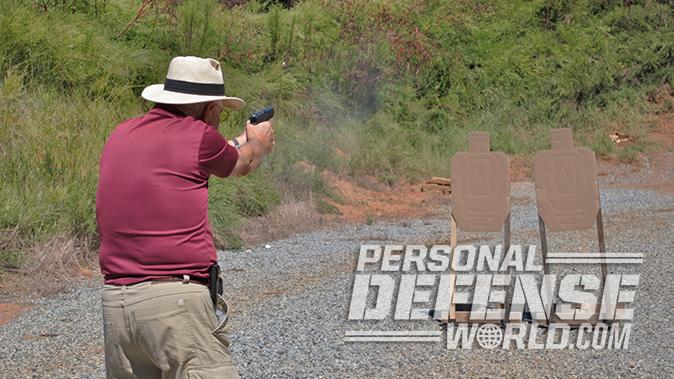 FBI Drill: Lift the pistol and fire two body shots and one headshot on a pair of targets at 7 yards. Reload and repeat. Run the drill two more times for a total of 36 rounds.
