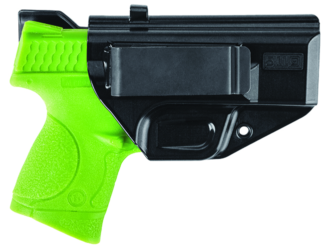 The Appendix IWB holster from 5.11 Tactical was designed in partnership with Viking Tactics (VTAC) and offers high-speed access and a secure fit. The holster is made of high-impact polymer, so it’s tough yet lightweight. It can be worn front or back and also features an integrated light clip for secure storage of your tactical light.
