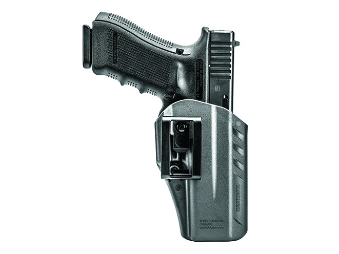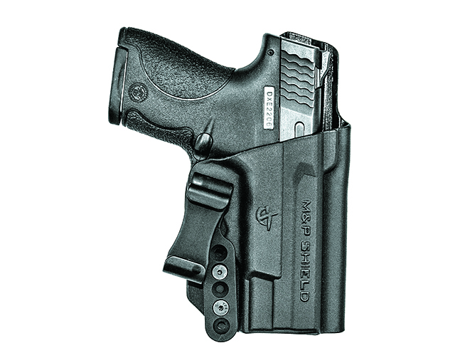 The ARC (Appendix Reversible Carry) holster is designed for comfortable appendix carry. It’s made of a soft, durable injection-molded polymer that flexes slightly, making it comfortable for all-day wear. It uses a passive-retention detent with an adjustment screw. This holster is completely ambidextrous, so it will accommodate left- and right-handed users, and it comes with two cant- and ride-height-adjustable belt clips that work with 1.5- and 1.75-inch belts.