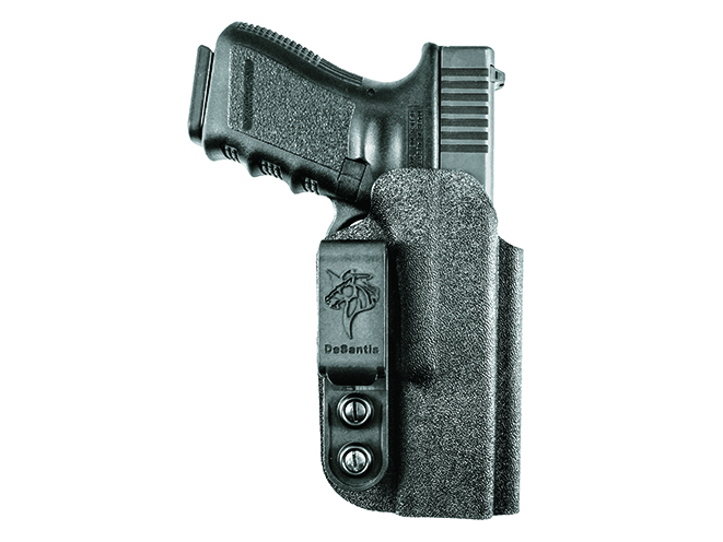 The new Slim-Tuk IWB holster from DeSantis is a minimalist, ambidextrous design made of Kydex. This holster uses DeSantis’ tuckable 360 C-clip. which lets you tuck in your shirt for maximum concealment. The clip is made of nylon, so it’s lightweight and flexible, and it securely fastens the Slim-Tuk holter your belt.