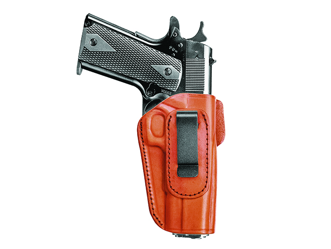 Appendix IWB carry means your holster is just left or right of your belt buckle, depending on your shooting hand. A hoodie, pull-over sweatshirt, loose-fitting T-shirt and other outer garments can conceal your weapon in appendix carry. If you bend over while wearing a holster behind your hip, it’s easy for people to see your weapon. But larger full-sized pistols are less comfortable in an appendix carry position, especially if you must sit for long periods or bend over a lot. If you’re on your feet all day, however, it’s not much of an issue.