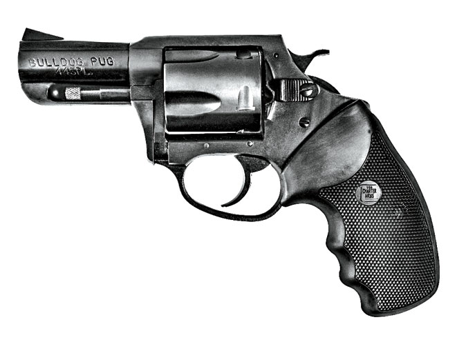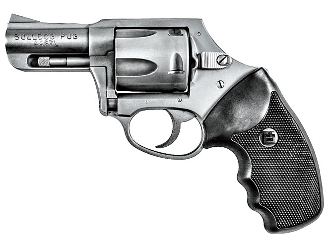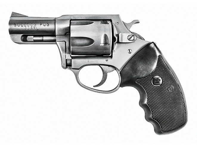 There are now 11 different versions of Charter Arms’ .44 Bulldog available. Aside from the 3-inch-barreled Classic, six of the company’s other versions come with 2.5-inch barrels in either blue or stainless steel. The common denominator are the revolvers’ heavy, non-tapered barrels with their integral ejector rod shrouds. These models also have fixed sights and black rubber combat grips.