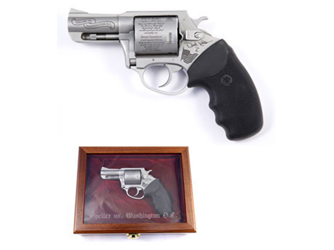 This fully engraved .44 Bulldog commemorates the historic win of the US Supreme Court case “Heller vs D.C.”