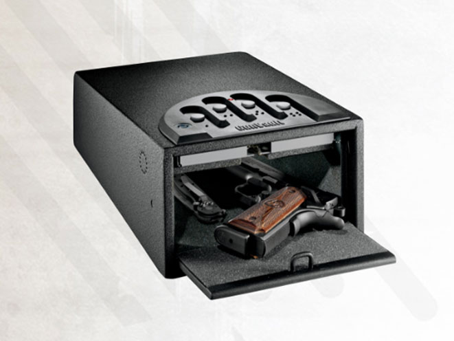 Biometric locking safes are indeed becoming increasingly popular as the technology improves and becomes more affordable. These types of safes are extremely convenient and fast. There is no combination to try and recall in a half-asleep panic or keys to fumble with. Another pistol safe that uses this type of convenient, fast-access lock is the Bulldog Biometric Fingerprint Pistol Vault. It features heavy gauge steel construction, a padded interior lining and a key override. The Bulldog safe has 14.5-by-16.5-by-8-inch dimensions and the storage capacity for 25 fingerprints.