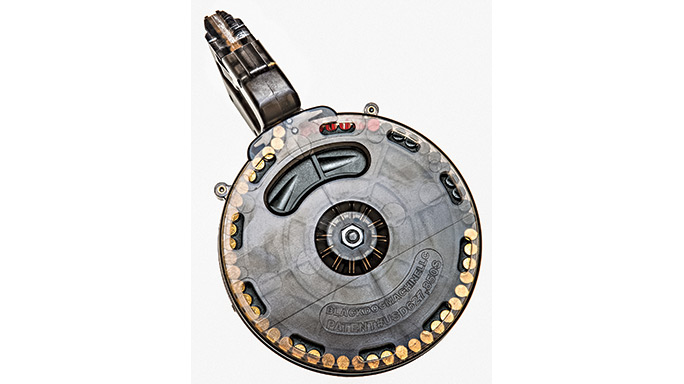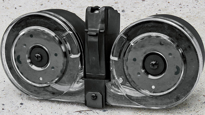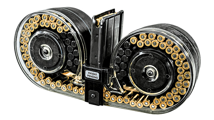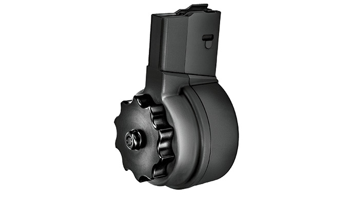 American Tactical (AT) is offering German Sport Guns (GSG) rotary drum magazines that give the ever-popular GSG-522 and 10/22 rifles 110 rounds of rimfire firepower. The exterior of the drums are ribbed for greater durability on the range. Also, these drums are best used with non-waxed, lubricated .22 LR rounds like the Remington Viper, Federal Champion or American Eagle, and Winchester Super Speed. The MSRP is $80.