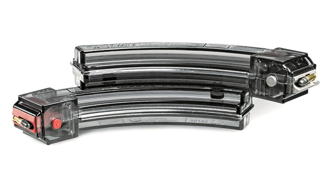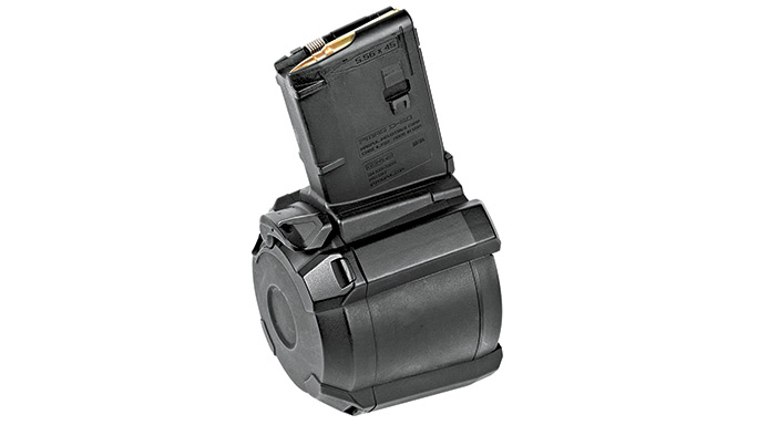 Just plug this 50-round drum magazine into your Smith & Wesson M&P15-22 rifle and you’re good to go. Made of a clear polycarbonate, glass-filled nylon, this drum magazine is durable, reliable and offers maximum firepower for your rimfire. The drum works best with Federal, CCI/Blazer and American Eagle round-nose bullets; it will not function reliably with hollow-point bullets. The MSRP is $80.