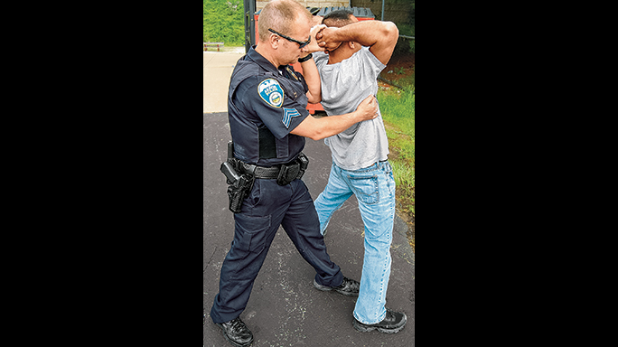 While conducting Terry frisks or searches with consent, stay away from “prop searches,” where suspects are advised to “assume the position” and put their hands on the trunk, hood or roof of a vehicle, or on a wall, and the officer pats them down with little to no control. Wall or prop searches actually afford the suspect more stability or “base” than that of the officer. Placed in this position, a suspect can escape or attack simply by grabbing the officer’s hand and turning violently, pitching the lawman into the wall or car.