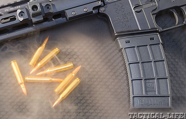 The new, 30-round PMAG GEN M3 from Magpul has a clear polymer window built into the AR magazine body that allows the operator to rapidly determine its remaining rounds. It employs a long-life stainless steel spring, a four-way anti-tilt follower and constant curve internal geometry to ensure reliable feeding. It also can be disassembled without tools. A redesigned bolt catch notch provides increased bolt catch clearance, and an oversized travel stops ensure the magazine can’t be over-inserted into a weapon.