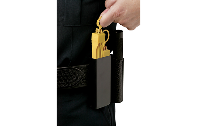 ASP Tri-Fold disposable restraints allow officers to safely detain multiple people at a turbulent scene. A single, narrow duty belt holster holds a pair of Tri-Folds yet takes up less space than a single standard handcuff pouch. The MSRP for a pack of six is $24.