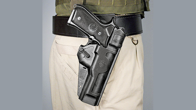 Security holsters are categorized by different levels of retention: I, II, III and IV. Originally, the retention number meant the number of motions that needed to be taken before the handgun could clear the holster. This number could include various combinations of releasing a number of catches and/or moving or twisting the gun in a particular direction as part of the draw. This is not always the case today, however, so as you look at potential security holsters for duty wear, make sure you understand the definitive terminology used by individual manufacturers. Unlike body armor, there is no standardization of security levels. Here are some of the best security duty holsters available for 2015.
