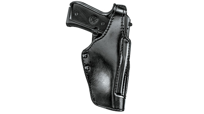 Real leather is still a viable option in security duty rigs. The B720A Astro is an excellent example of a modern leather security rig. Featuring true Level II retention, an automatic triggerguard lock secures the gun when holstered and defends against gun-grab attempts. The standard-position thumb break provides another layer of security. After releasing the thumb break, rock the gun forward and draw the gun straight up.