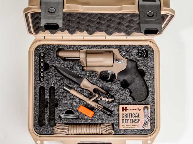 Hopefully, if someone ever tries to invade your home, you’ll be able to immediately stop the criminal. But if you end up hunkering down in a bedroom while waiting for the police to arrive, it’s always a good idea to have some type of 72-hour kit or home-defense bag on hand. You can throw extra ammunition in this bag, another handgun, flashlights, radios and any other items to increase your odds of keeping your family safe.