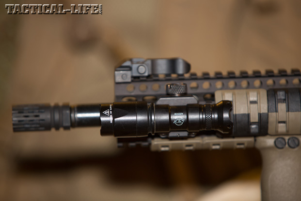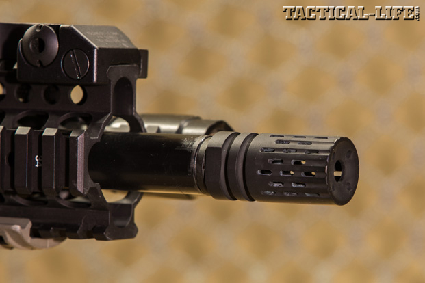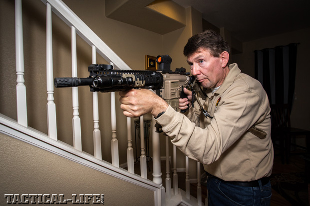 Inside the home, this compact little powerhouse certainly makes it easier to navigate around obstacles like doorways, corners and furniture; but as with any solution, there are pros and cons. One of the pros is a 30-round magazine stoked with 5.56mm ammunition—an accurate, hard hitting, low-recoil round that has been the mainstay of the U.S. military since Vietnam. One of the cons is that the 5.56mm round is quite capable of slicing through multiple walls inside a typical residential dwelling. Of course, there are other rounds that create the same dilemma—magnum pistol cartridges and most shotgun slugs, for example.