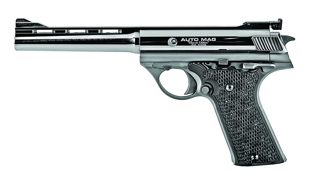 The big stainless-steel “Classic Edition” autoloader used by Dirty Harry is back in .44 AMP, with other versions on the way. Out of production since 1982, this big pistol has a vent-rib, 6.5- or 8.5-inch barrel, an overall length of 11.7 to 13.7 inches and an unloaded weight of 53 to 58 ounces. A hammer-fired semi-auto, it features an adjustable rear sight, a target trigger, textured G10 grips (as well as other options) and an 8+1 capacity.