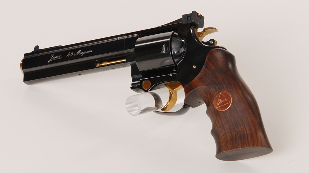 Made in Germany, Janz revolvers are available with either fixed or interchangeable barrels. The latter allows you to convert one of these custom-made revolvers from a .22 LR to a .454 Casull in a matter of moments. You can also choose various finishes, sights, barrel lengths and embellishment options like engraving. The Type E and EM revolvers cover the mid-sized frame options while the larger-framed Type MA series revolvers are currently available in .460 and .500 S&W.