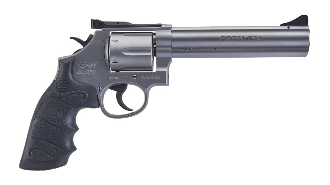 The SR-38 is a .357 Magnum/.38 Special revolver made by Sarsilmaz in Turkey and imported into the U.S. through SAR USA. Sarsilmaz has more than a century of firearms manufacturing experience and is still owned by the same family who founded it in 1880. Classic S&W fans will recognize quite a few similarities with these revolvers, which are available with either black or satin stainless finishes. The cylinder holds six cartridges, and 2.5-, 4- and 6-inch barrels are available.