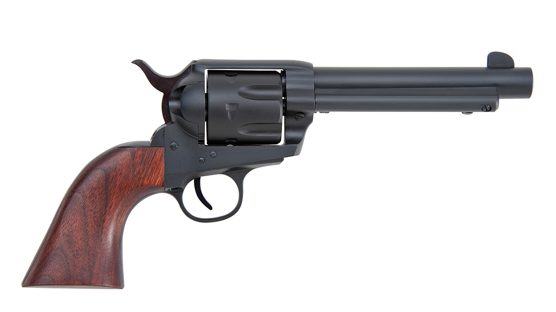 The Drifter was developed by Taylor’s & Company Firearms for its Old West enthusiasts. This version is built on a new model Cattleman frame and features a full octagonal barrel in either .357 Magnum or .45 Colt. These barrel options help the Drifter stand apart from the standard Cattleman models, which are high-quality Peacemaker reproductions. To that end, the Drift features a fixed blade front sight, a forged frame and other classic touches customers have come to look for. Taylor Tuning is also available on this model.