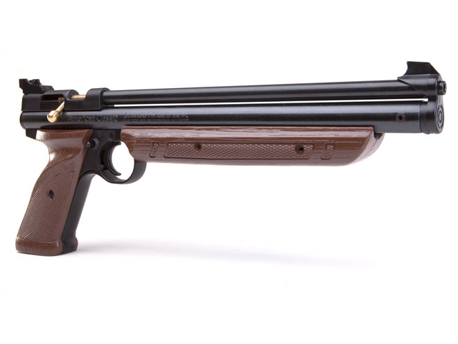Unlike other air pistols that are powered by either a single-stroke cocking mechanism or a CO2 cartridge, the American Classic allows a user to pump up the pistol. Pump it up from three to 10 times, which offers a 600-fps velocity. The user can adjust the velocity to suit the shooting scenario. The steel barrel is rifled. For more information, visit http://www.crosman.com or call 800-724-7486.