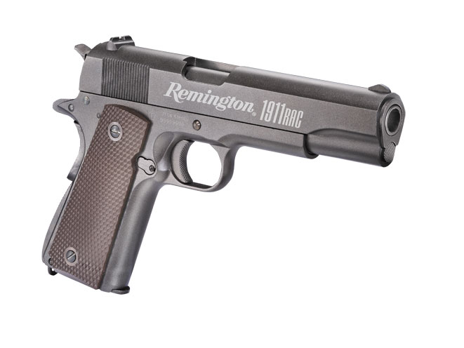 The 1911 RAC at first glance looks like a government-issued 1911A1 from WWII. Though the styling is classic, this is a blowback BB pistol juiced with CO2 cartridges. The weight and controls are nearly identical to a 1911A1, and the field-stripping process is similar. As a steel BB is fired, the slide cycles backward to simulate actual recoil. For more information, visit http://www.remingtonairguns.com or call 877-387-6691.
