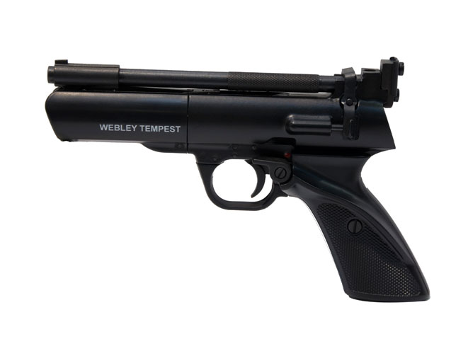 The Tempest is a classic air pistol with a barrel-over-cylinder design that is a direct descendant of the Mark I that was developed in 1924. The Tempest was released in 1979. It’s like the 1911 of air pistols with a natural grip angle and an excellent trigger. Two of the unique characteristics of the Tempest are its silent report and the cocking force. Since the Tempest is compact, the cocking lever takes some leverage to cock the pistol. The trigger is adjustable, and the barrel is rifled. It is not uncommon to get less than 1-inch groups at 25 feet. For more information, visit http://www.webleyandscott.com or call 775-825-9835.