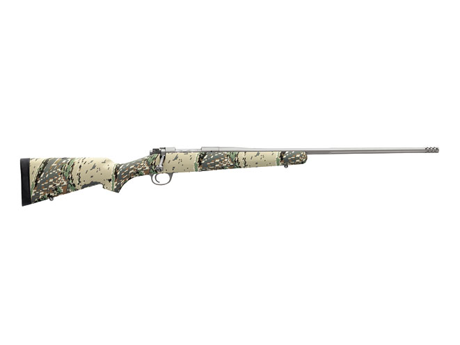 Chambered in a wide range of calibers, the Montana is Kimber’s workhorse mountain rifle. It has a Kevlar-reinforced carbon-fiber stock with pillar and glass bedding. A Mauser claw extractor offers controlled feeding, while the match-grade chamber and barrel help keep Kimber’s sub-MOA accuracy promise. Weight varies with the caliber, but Kimber worked hard to keep the Montana rifle light while maintaining its ruggedness.