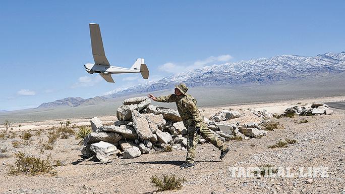 RQ-20 Puma AE: AeroVironment’s Puma is a battery-powered and hand-launched micro-UAS. Its wings unfold to a 9.2-foot span, and it weighs just 13 pounds. It can remain airborne for two hours, and its engine propels it at a 23-mph cruise speed. Its electro-optical/IR camera feeds real-time intelligence to a common control unit, and it can provide controlled surveillance up to 9 miles from its launch point. Obviously low-speed and low-altitude, the Puma has added tactical value to small Army and Marine Corps combat units since 2012 after its development in 2008. For more information, visit avinc.com or call 626-637-9983.