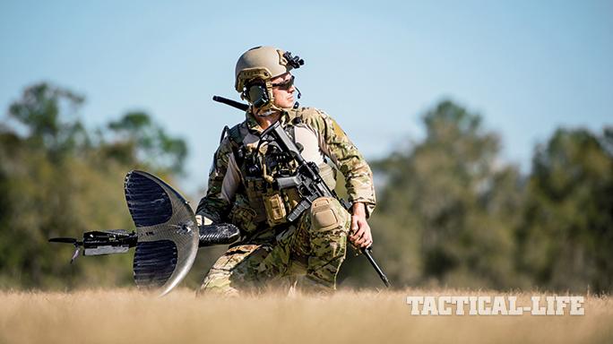 Maveric: Prioria Robotics has produced one of the smallest UAS in military service for the Army since 2008. The Maveric weighs 2.6 pounds, and its carbon-fiber wings and fuselage, both under 30 inches, roll up into a 6-inch-diameter storage and launch tube. It can also be hand-launched. The Maveric’s components are modular, enabling it to adapt to a variety of missions. Its electric motor enables flights up to 800 feet above ground level, and it cruises 30 mph up to an hour within a 9-mile wireless range. Its cameras operate day or night and provide a 360-degree field of view. For more, visit prioria.com or call 352-505-2189.