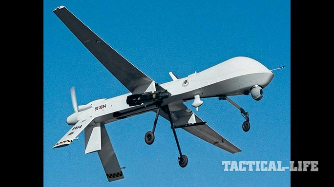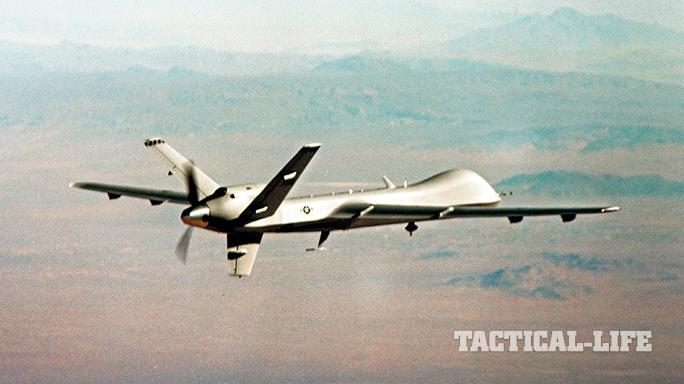 MQ-1 Predator: Produced by General Atomics Aeronautical Systems, Inc. (GA-ASI) and in service with the U.S. Air Force and CIA since 1995, Predator variants are considered a “Tier II medium-altitude, long-endurance unmanned aircraft system (MALE UAS).” It handles reconnaissance