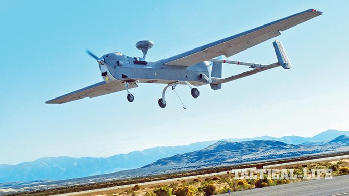 RQ-170 Sentinel: Rarely seen and in Air Force service, Lockheed Martin’s Sentinel is a flying-wing design in service since 2007. A big aircraft with a 65-foot wingspan, its service ceiling is 50,000 feet. Detailed specifications aren’t available, but it apparently utilizes EO/IR sensors and active electronically scanned array (AESA) radar for both recon and electronic warfare. These capabilities, and other features of this highly classified platform, are speculative. It has conducted numerous operations in Afghanistan and other combat theaters. For more information, visit lockheedmartin.com or call 302-478-1583.
