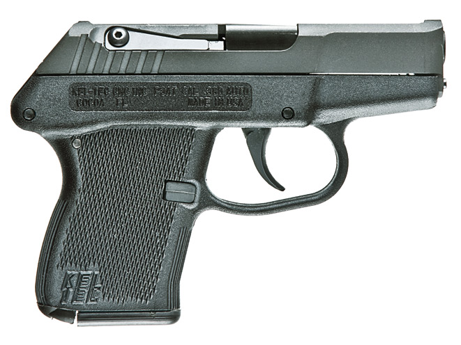 One of the more popular subcompact pistols on the market, the P-3AT is a polymer-framed, double-action-only pistol chambered in .380 ACP. Weighing only 8.3 ounces unloaded, this 2.7-inch-barreled gun can easily slip into a pocket and be carried very discreetly. The pistol’s standard magazines hold six rounds of .380 ammo. MSRP: $318. (http://www.keltecweapons.com; 321-631-0068)