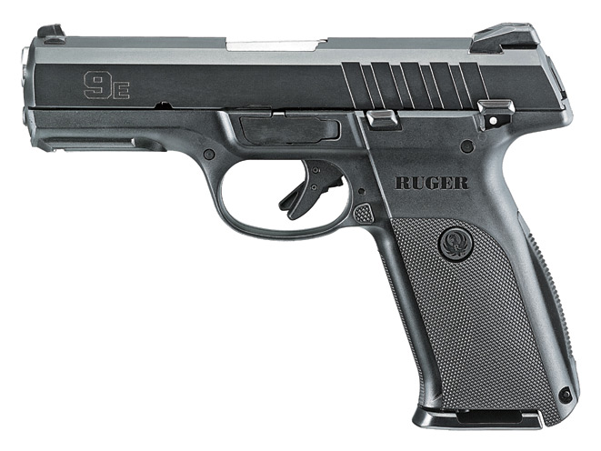 A full-size 9mm pistol, the SR9E is a budget-conscious pistol for home defense and other self-defense needs. The double-stack magazines hold 17 rounds and the gun comes fitted with large, three-dot sights. An accessory rail is also standard on the 27.2-ounce SR9E. MSRP: $429. (http://www.ruger.com)