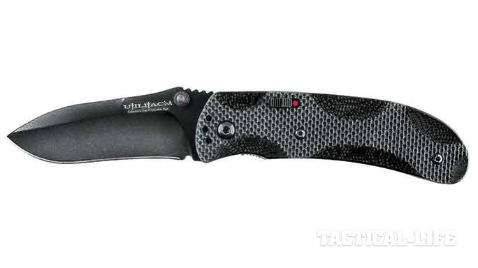 Ontario Utilitac: Ontario has updated the Joe Pardue-designed Utilitac folder into a great mid-sized, assisted-opening duty knife. The opening “snap” on this one is really impressive! Both stainless and black powder-coated finishes for the 3-inch, AUS-8 blade are available. The knife also has black G10 grips and weighs 3.2 ounces. (ontarioknife.com; 800-222-5233)