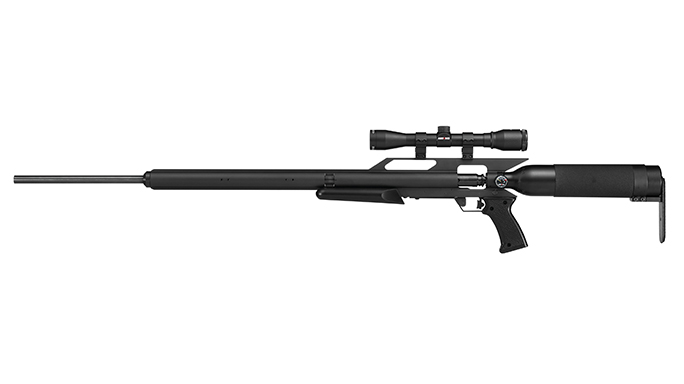 AirForce Texan: The Texan from Air Force is the most powerful production air rifle on the planet. Firing .45-caliber bullets ranging in weight from 143 to 450 grains, the pre-charged Texan air rifle is adequately powerful to hunt deer or wild pigs. Unlike traditional pellet guns, this is a legitimately serious air rifle. The Texan is powered by an onboard, pre-charged air tank that runs at 3,000 psi. While this tank could theoretically be powered by a hand pump, realistically the rifle requires a carbon-fiber parent tank or scuba tank as a pressure source. The Texan sports a Lothar Walther barrel and an incredibly precise target trigger.