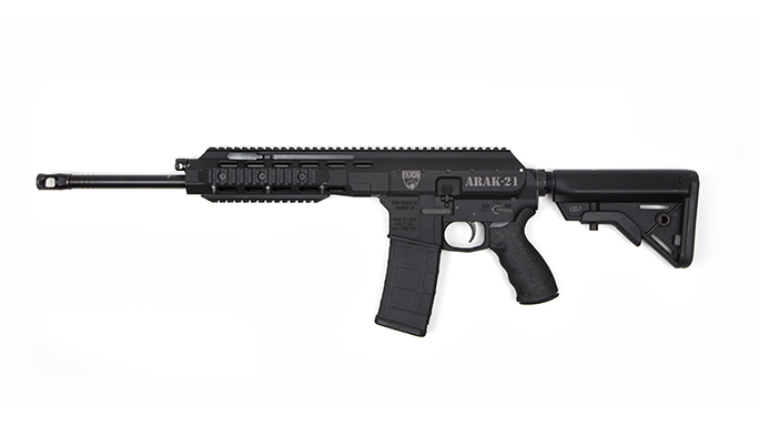 Faxon Firearms ARAK-21: The Faxon Firearms ARAK-21 melds the best features of the AR-15 with the best attributes of the AK-47 to deliver a robust tactical rifle sporting modern ergonomics and old-school reliability. The long-stroke piston system of the Kalashnikov is one of the most reliable rifle action ever devised. Meanwhile, the advanced ergonomics of the AR-15 make for a rifle that is smooth in action and quick to feed. The ARAK-21 combines both into a sleek rifle that is both versatile and functional. The ARAK-21 upper receiver mounts to any mil-spec AR-15 lower and swaps calibers between 7.62x39mm, 5.56mm and 300 BLK in minutes. The reversible charging handle is easily accessed and fast in action.