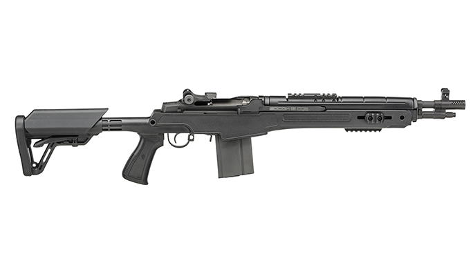 Springfield Armory M1A: Springfield Armory produces new versions of the venerable GI-issue M14 called the M1A. Chambered for the hard-hitting 7.62x51mm cartridge and feeding from 20-round box magazines, the M1A brings barrier-penetrating power to a nicely portable chassis. The new M1A SOCOM 16 CQB is designed for tight spaces. The rifle has a 16.25-inch barrel, a collapsible stock and an XS tritium front sight. Thusly configured, the SOCOM 16 CQB maneuvers indoors and within an automobile like a much smaller rifle while retaining .30-caliber punch. The SOCOM 16 CQB is a fast-handling, powerful rifle that is proven, versatile and effective for many tasks.