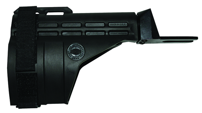 Century Arms SB47: With the increasing popularity of AK pistols and stabilizing arm braces for AR pistols, it was only natural for a company like Century Arms to design an arm brace for the AK pistol. The SB47 stabilizing brace attaches to the receiver via the pistol grip with a simple wedge design. It features twin contoured rubber panels that wrap around the shooting arm and secure with Velcro straps. Instead of holding the AK pistol with just your hand, the arm brace provides a much more secure, supported and balanced grip. This technique dramatically improves the balance of the pistol and makes it easier to shoot accurately even when not using the brace. Just don’t shoulder the weapon via the brace for legal reasons.
