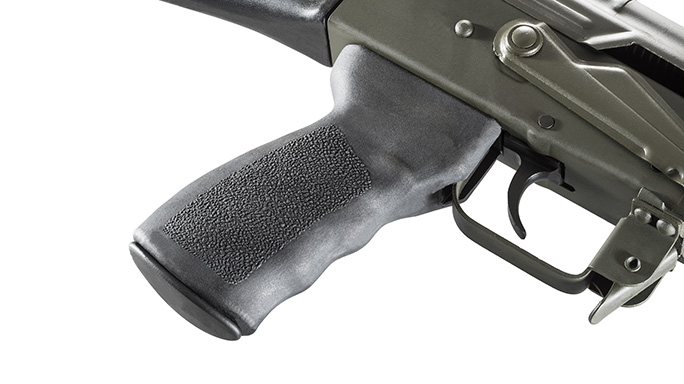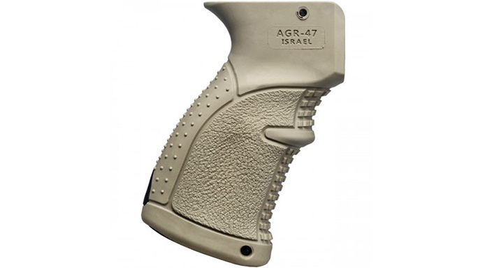 FAB Defense AGR-47 Grip: The AGR-47 rubberized pistol grip from FAB Defense is an ergonomic alternative that fills the hand much better than the original AK grip, and it offers a more secure hold with the added benefit of an internal storage compartment. The AGR-47 features multiple textured surfaces and a middle finger indexing point. The grip is available in a variety of colors, too.